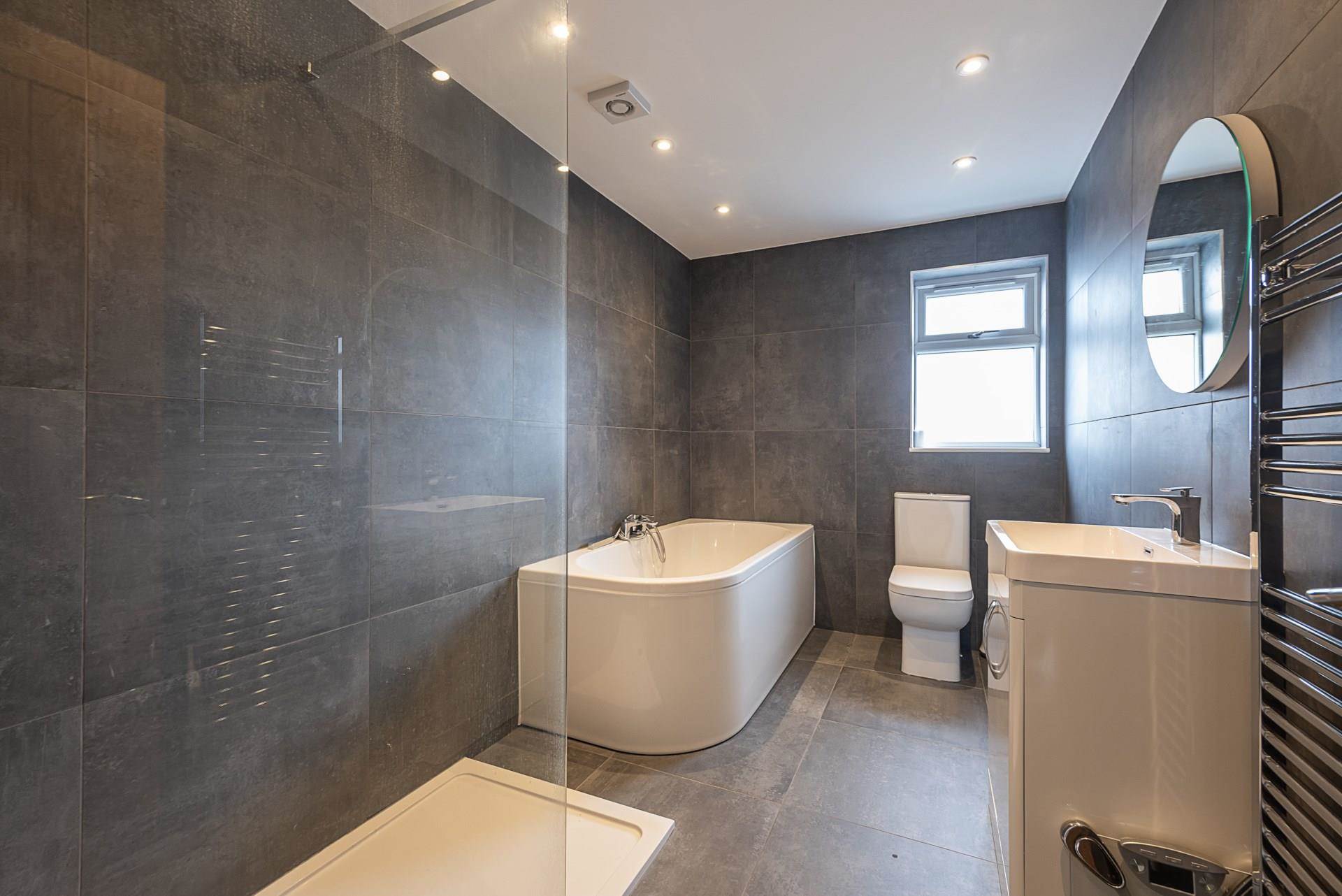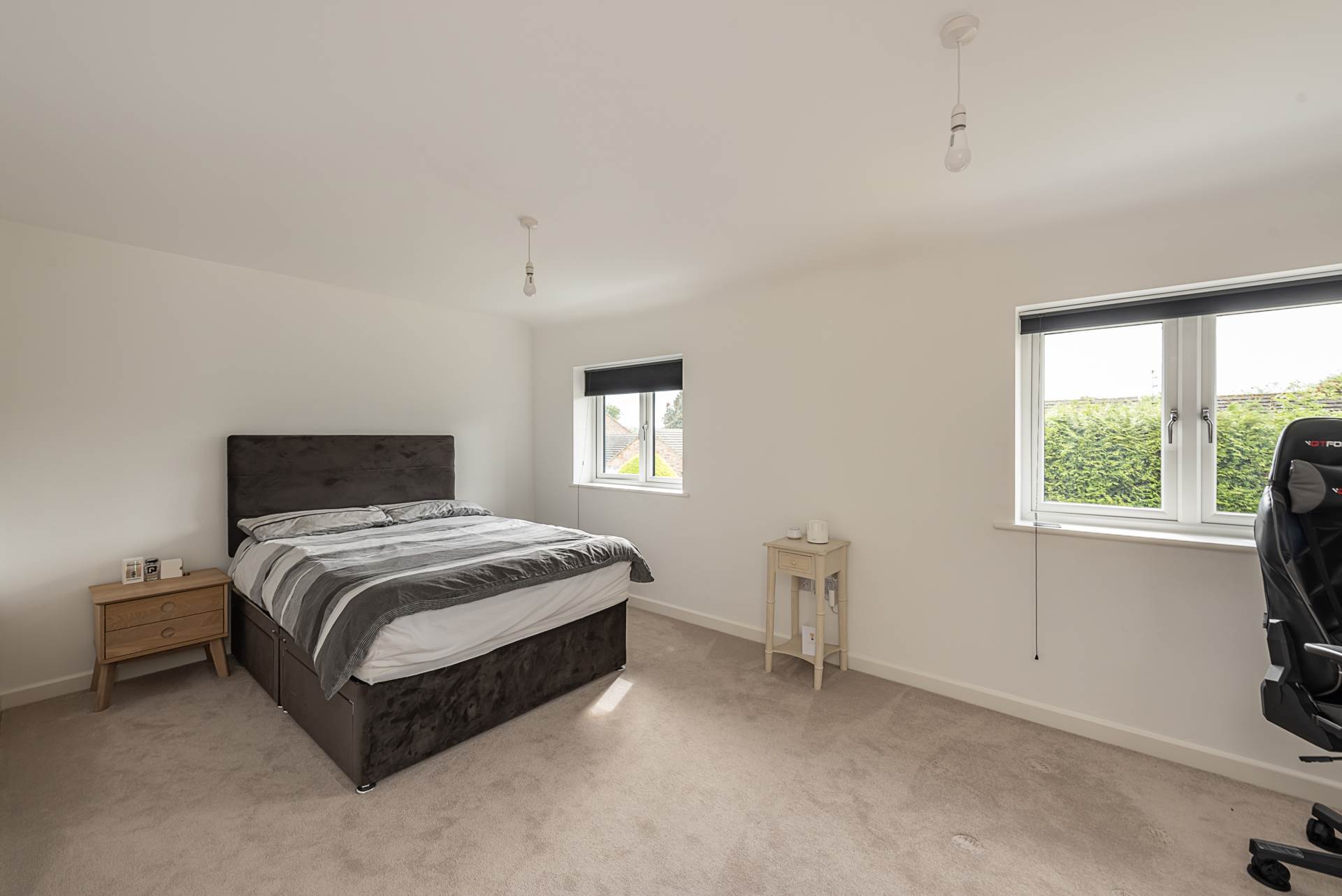 On the first floor both bedrooms are generous double rooms, one with a luxurious en suite shower room. The family bathroom serves the other bedroom which enjoys views over the garden. Upstairs again, is a further suite with additional eaves storage and a range of built in wardrobes.